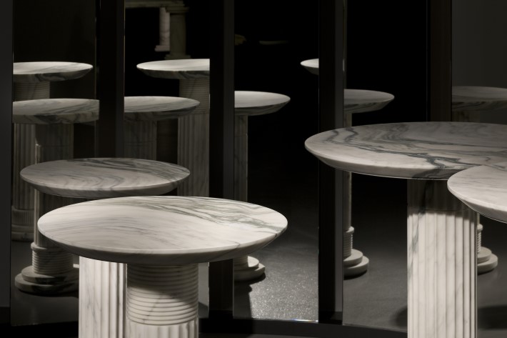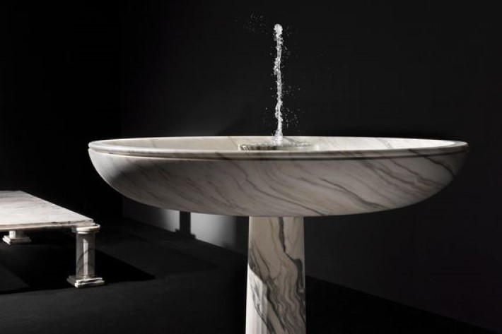 Teaming up with architect and interior designer Aline Asmar d’Amman, the man behind Culture in Architecture, a design studio based in Beirut and Paris, with international projects ranging from high end residential to luxury hospitality and bespoke furniture, Karl Lagerfeld took inspiration from the perfect ratio and ancient Greek architecture, a period which he particularly admires, to produce a magnificent monochromatic line of marble furniture. Through the range of lamps, tables, fountains, mirrors and more Karl Lagerfeld states that this collection of furniture is meant to highlight the beauty of the material. All of his pieces are made of Arabescato Fantastico and Black Nero Marquina, two of the rarest of marbles. Nero Marquina marble is a deep black with thin strokes of white and Arabescato is a brilliant white with dark gray veins. Arabescato Fantastico is exceptionally rare and was not quarried for 30 years before Karl Lagerfeld awoke it with his golden touch.