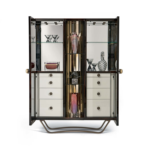The Traje de Luces bar cabinet encompasses an exploration of delicate forms and a richness in details found while traveling through the south of Spain. Elegance, tradition, and superior craftsmanship combined into a perfect fusion of materials to entice you always.