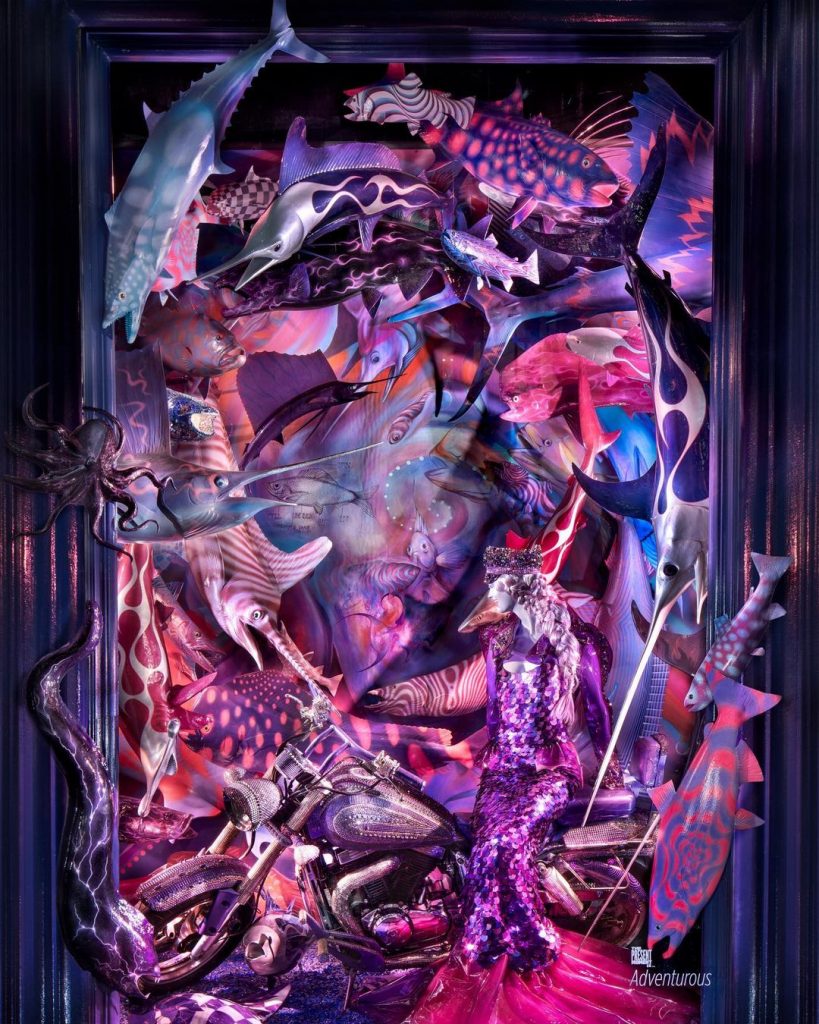 The design of the Bergdorf Goodman Windows 2021 is extremely colorful, predominantly red, purple, and blue. This is visually appealing, conveying joy. The fantasy side predominates, which awakens curiosity and imagination. In fact, all these features make the windows really different. And most importantly, they convey the happiness we so desperately need at this time of year.