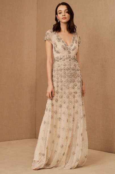 It’s no secret that Miss Bridgerton was partial to a bit of beading on a party frock. She may have ditched the necklace Prince Friedrich gave her, but she still loves bling. If you do too, this elegant, beaded ball gown is for you.