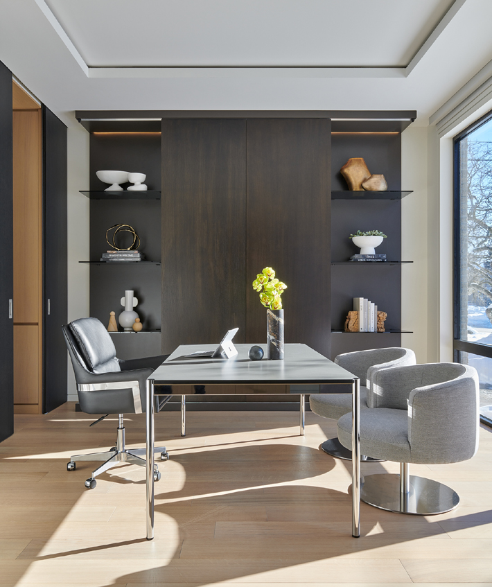This custom home was made for entertaining and endless family gatherings! I love the minimal design and the warmth of all the spaces. Custom millwork lines almost every wall! We layered a collection of luxurious materials from leather wrapped drawers, natural marbles, rift cut oak, lacquered panels, and textured metal mosaics.
