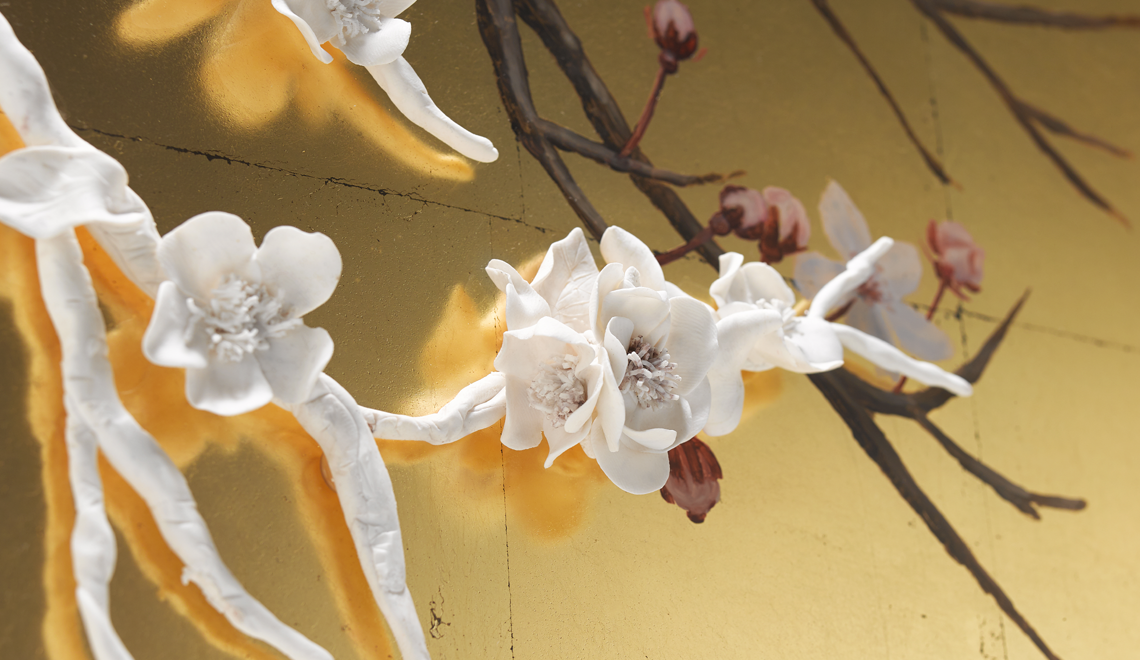 Created by Maria Apelo Cruz, now Maria Jovanovic, and her husband, Mike Jovanovic, together as MJ Atelier, the pair creates stunningly intricate and creative designs for clients. Known for their custom handmade wall coverings, which feature a multitude of designs using white plaster, along with gold and silver garnishing, MJ Atelier handcrafts charming and eye-catching 3D wall art.