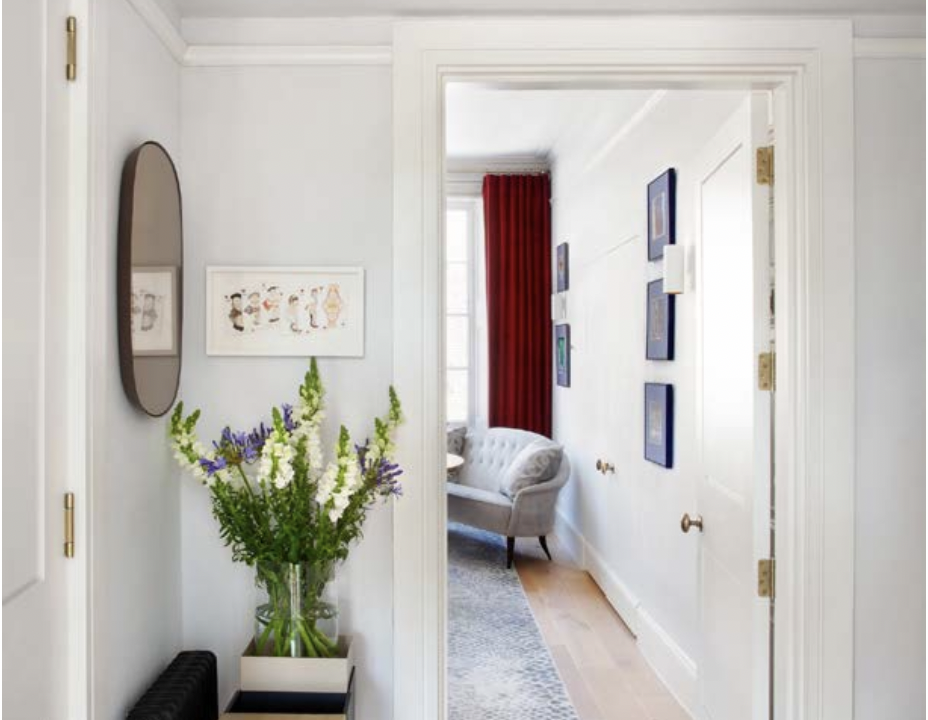 The kitchen roman shade features a famous British Arts & Crafts era print entitled “Nympheus” by GP & J Baker. Carpets by STARK of New York bring art to the floor of each space. While decorative accessories by world-renowned artists Marc Ricourt, Christopher Kurtz & James Rigler from Sarah Myersough Gallery, accent table tops throughout each space.