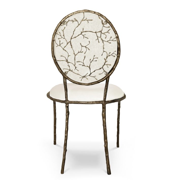 I love the Enchanted Dining Chair. It is a beautiful and very bold design. It’s comfortable, stands out, and adds visual interest to any room. We once used it to help create a dreamlike bedroom.